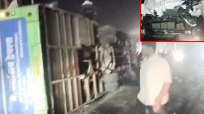 50 मुसाफिरो से भरी बस डिवाइडर से टकराकर भोपाल-नर्मदापुरम हाईवे पर पलटी