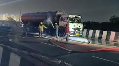 राष्ट्रीय राजमार्ग 48 पर केमिकल टैंकर और ट्रेलर की भीषण भिड़ंत
