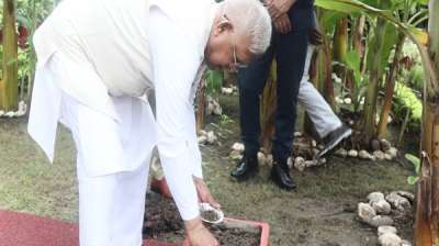 भोपाल : राज्यपाल मंगुभाई पटेल ने शुक्रवार को राजभवन उद्यान में तुलसी का पौधा लगाया। उन्होंने गमले में तुलसी के बीज बोकर पर्यावरण-संरक्षण का संदेश भी दिया।