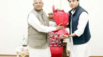 भोपाल। केंद्रीय मंत्री ज्योतिरादित्य सिंधिया भोपाल पहुंचे। एयरपोर्ट पर उनका जल संसाधन मंत्री तुलसी सिलावट, खाद्य एवं नागरिक आपूर्ति मंत्री गोविंद सिंह राजपूत, विधायक डॉ. प्रभुराम चौधरी और कृष्णा घाड़गे...