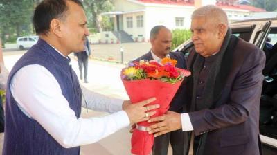 पूर्व उप राष्ट्रपति धनखड़ अल्प प्रवास पर पहुँचे राज भवन