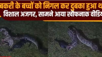 हैरतअंगेज नजारा: विशाल अजगर ने निगले बकरी के दो बच्चे, भागने से पहले उगला सब, VIDEO वायरल