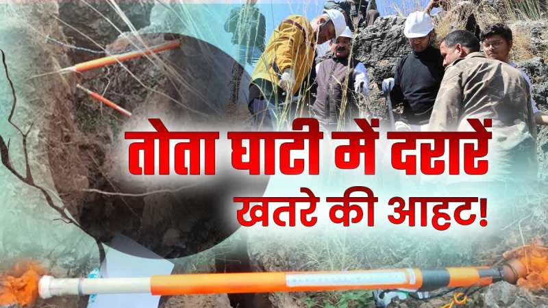 तोता घाटी में जहां पर सड़क क्रॉस करती है, उससे 300 मीटर ऊपर जाएं, तो पहाड़ के टॉप पर चार बड़ी दरारें हैं. इन दरारों का आकार इतना बड़ा है कि एक भूवैज्ञानिक के नजरिए से ये दरारें डराने वाली हैं. ये दरारें तकरीबन ढाई से 3 फीट चौड़ी हैं. पहाड़ी पर उनकी लंबाई काफी ज्यादा है तो गहराई इतनी ज्यादा है कि इसका अंदाजा लगाया जाना बेहद मुश्किल है.