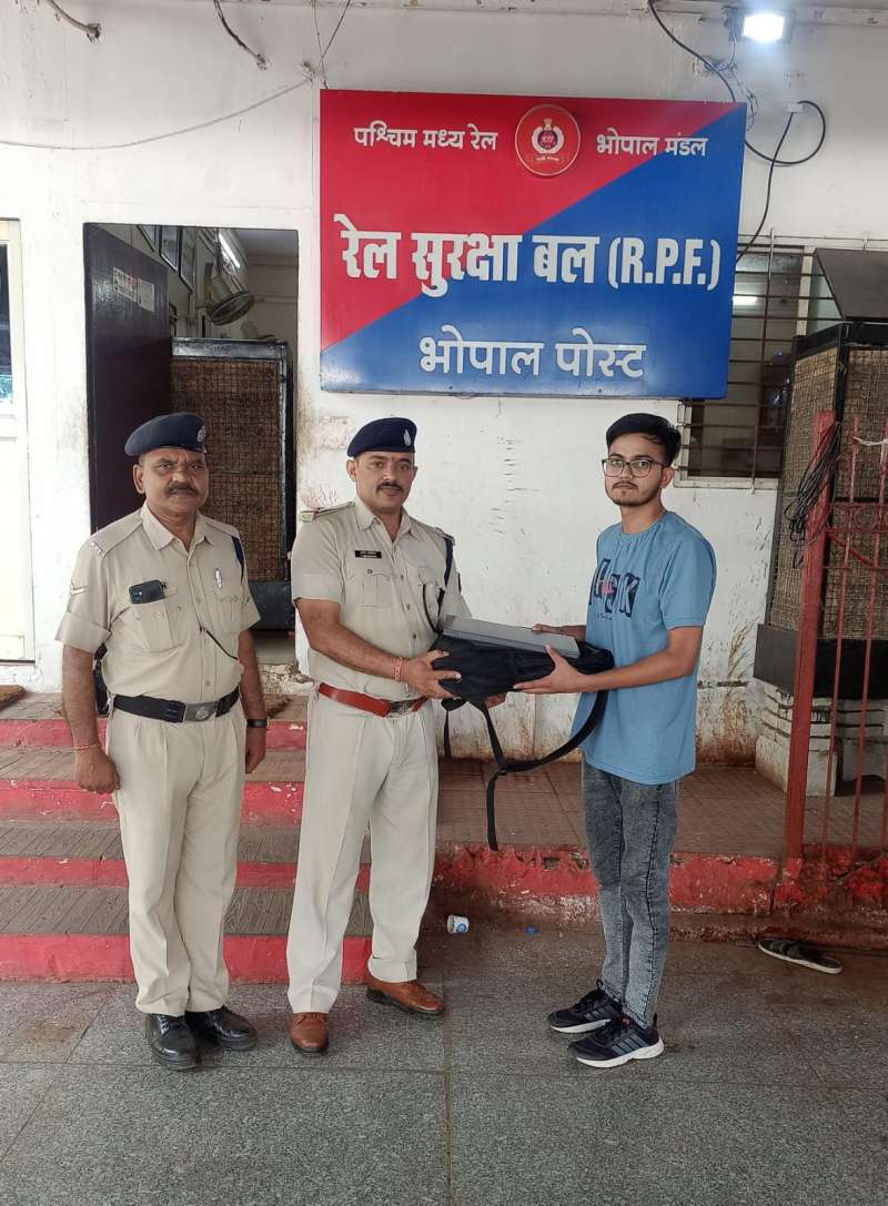 दिनांक 17 जुलाई 2025 को ड्यूटी पर तैनात आरक्षक बी. बी. प्रजापति को ट्रेन संख्या 12853 (अप) के कोच S2 की सीट संख्या 56 पर सफाईकर्मी के माध्यम से एक लैपटॉप बैग प्राप्त हुआ। आरक्षक द्वारा तत्परता दिखाते हुए उक्त बैग को तत्काल आरपीएफ पोस्ट भोपाल में जमा कराया गया।