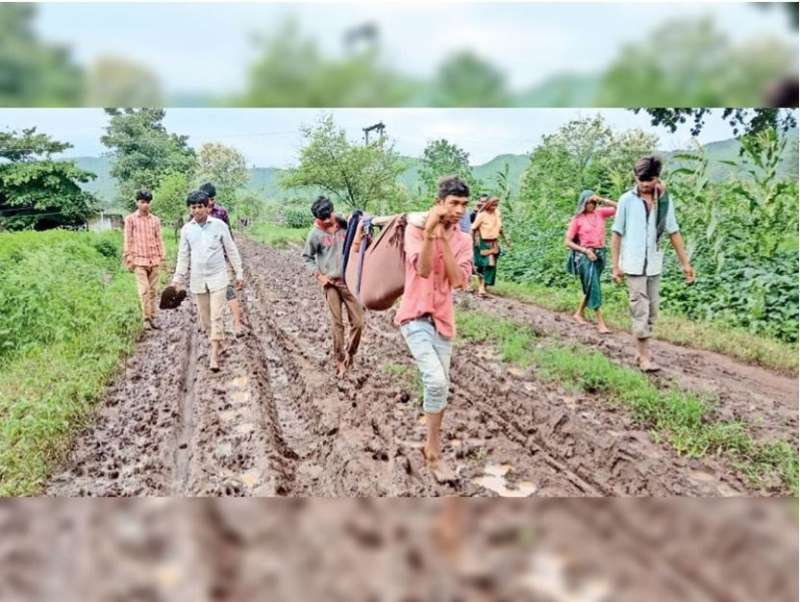 गर्भवती को खाट पर ले जाने को मजबूर हुए परिजन, सिंगरौली में सड़क अब तक नहीं बनी