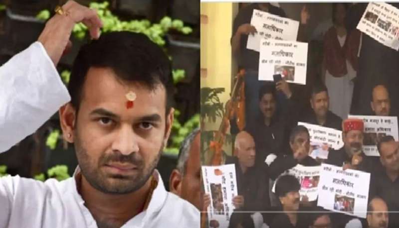 पटना। बिहार विधानसभा के मॉनसून सत्र में जहां विपक्ष के कई विधायक सरकार के खिलाफ विरोध दर्ज कराने के लिए काले कपड़े पहनकर पहुंचे, वहीं राजद विधायक तेज प्रताप यादव सफेद कुर्ते में नजर आए। जब उनसे काला कुर्ता नहीं पहनने पर सवाल किया गया, तो मुस्कराते हुए उन्होंने कहा– काला हम शनिवार को पहनते हैं, मेरे ऊपर शनिचरा ग्रह है।