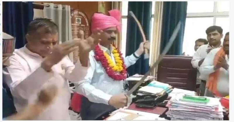 कलेक्टर ने पगड़ी पहन दिखाई तलवार, सियासी गलियारों में मचा हंगामा