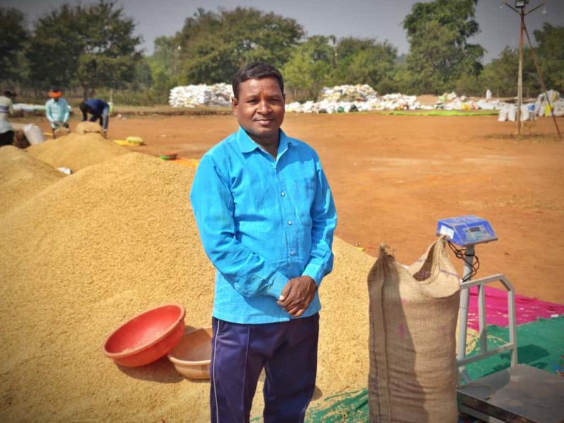 धान खरीदी केन्द्र में मिली बेहतर सुविधाओं से खुश हुए किसान कृपाराम बलिहार