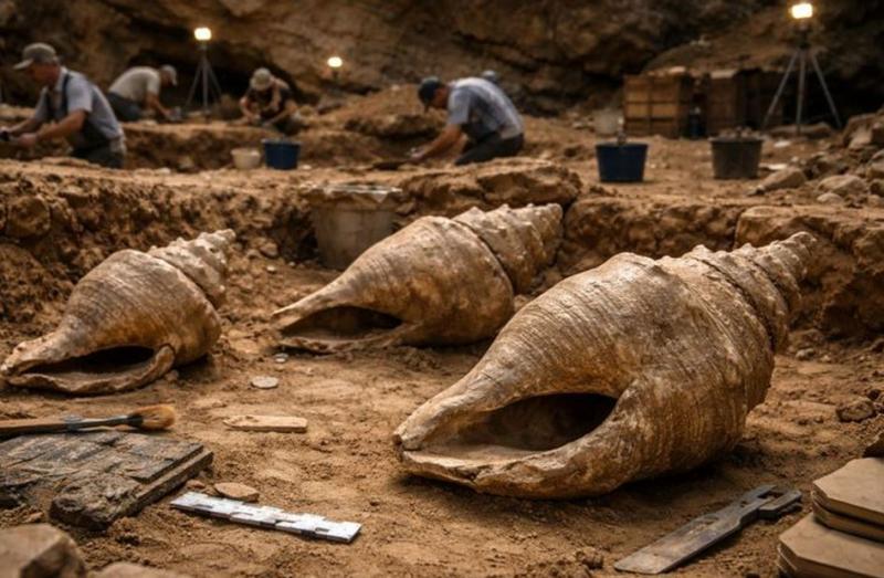 खुदाई में मिले 6000 साल पुराने विशाल समुद्री शंख