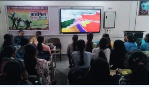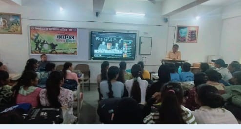धार। कारगिल विजय दिवस के उपलक्ष्य में शासकीय कन्या महाविद्यालय धार में विभिन्न कार्यक्रमों का आयोजन दिनांक 8 अगस्त 2025 को किया गया। कला संकाय के स्मार्ट क्लास में आयोजित इस कार्यक्रम में उपस्थित छात्राओं और स्टाफ के समक्ष कारगिल युद्ध पर बनी डॉक्यूमेंट्री फिल्म कारगिल विजय को दिखाया गया। इसी कार्यक्रम में महाविद्यालय के भूतपूर्व प्राचार्य और रसायन विज्ञान के विभाग अध्यक्ष डॉ बी आर पाटिल मुख्य वक्ता के रूप में सम्मिलित हुएA जिन्होंने अपने संक्षिप्त उद्बोधन के द्वारा उपस्थित छात्राओं को कारगिल विजय की जानकारी प्रदान की। अपने उद्बोधन उन्होंने बताया कि कारगिल की लडाई सन 1999 में हुई थीं।