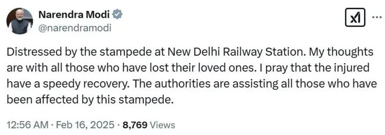 पीएम मोदी ने लिखा, नई दिल्ली रेलवे स्टेशन पर हुई भगदड़ से दुख पहुंचा