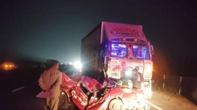 दर्दनाक हादसा: शादी समारोह से लौट रहे परिवार पर टूटा कहर, चित्तौड़गढ़ में ट्रेलर-कार टक्कर में पति-पत्नी समेत चार की मौत