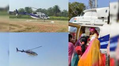 किसान पिता का बड़ा तोहफा, हेलीकॉप्टर से बेटी को ससुराल रवाना