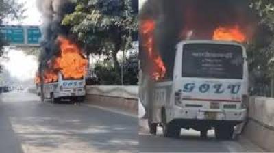 विधायक की बस में आग लगने से अफरा-तफरी, जांच शुरू