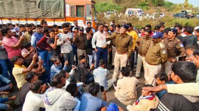 इंदौर-अहमदाबाद फोरलेन पर चालकों ने जाम लगा दिया, बस बंद होने के कारण यात्रियों को काफी परेशानियों का सामना करना पड़ रहा है