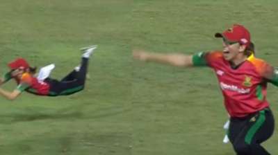 एरिन बर्न्स हवा में छलांग लगाते हुए लपका शानदार कैच